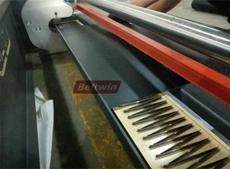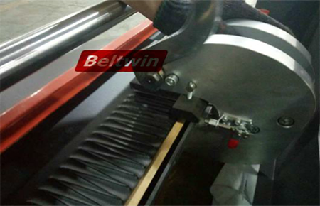 2. Mettez la courroie à plat sur la machine et observez-la attentivement pour déterminer les rouleaux qui seront traversés. Pour éviter plus de problèmes, veuillez vérifier que si la courroie passe avec tous les rouleaux avant de commencer l'épissage, sinon cela pourrait entraîner un décalage ou un relâchement.