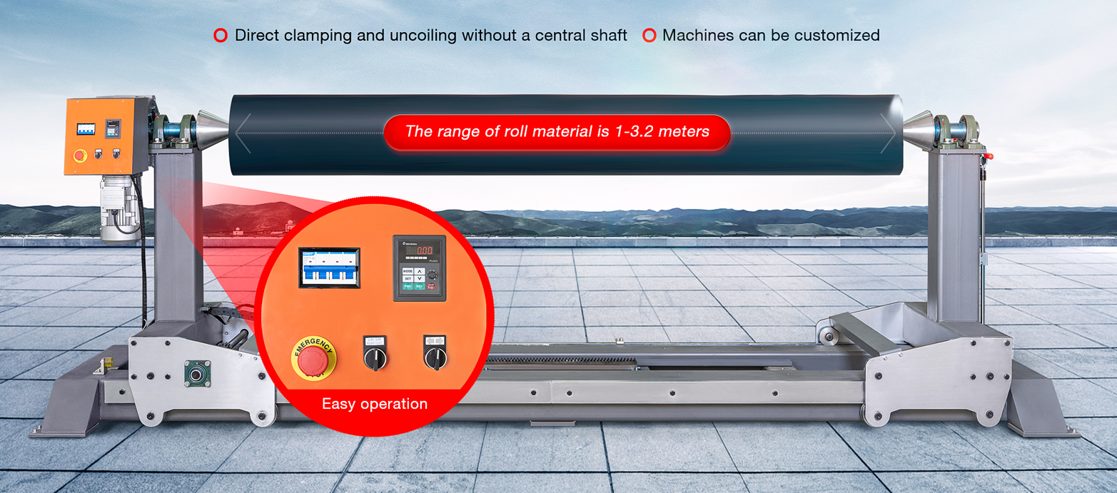 Fonctionnalité Serrage et déroulement directs sans arbre central Convient à différentes largeurs et dimensions intérieures des bobines de bandes transporteuses Spécifications Système Moteur Puissance Tension Max.Courroie