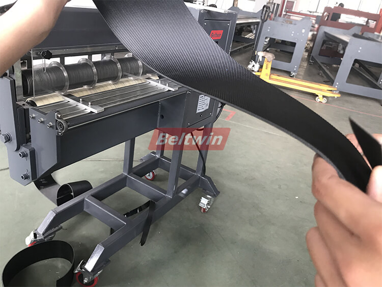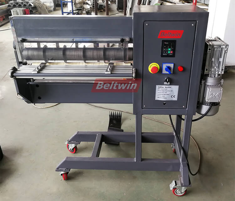 La découpeuse est conçue pour une coupe longitudinale facile des bandes transporteuses de moins de 600/900/1200 mm, peut être utilisée pour les bandes PVC/PU.