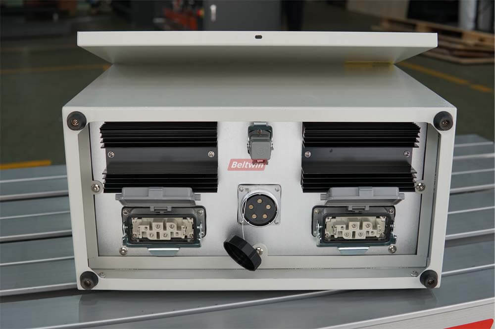 Un boîtier de commande pour 2 plateaux. Une fois que la température de chauffage des deux plateaux, le temps de séjour, la température de refroidissement et la pression ont été réglés, l'ensemble du processus d'épissage se déroulera automatiquement. Buzzer automatique de fin de cycle. Comprend 2 pièces de contrôle et d'indication de température numérique SHIMADEN, 1 minuterie, 2 ampèremètres et un voltmètre.