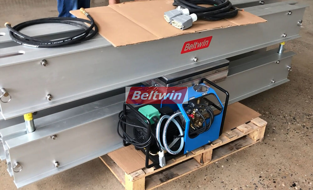 Vulcanisateurs de réparation de poutre transversale pour bande transporteuse, machine d'épissage et de réparation de bandes transporteuses en caoutchouc, utilisé pour les petites déchirures, les réparations ponctuelles, la réparation des bords et les réparations des déchirures, largeur de bande supérieure à 1600 mm. Structure en alliage d'aluminium à haute résistance - légère et robuste.