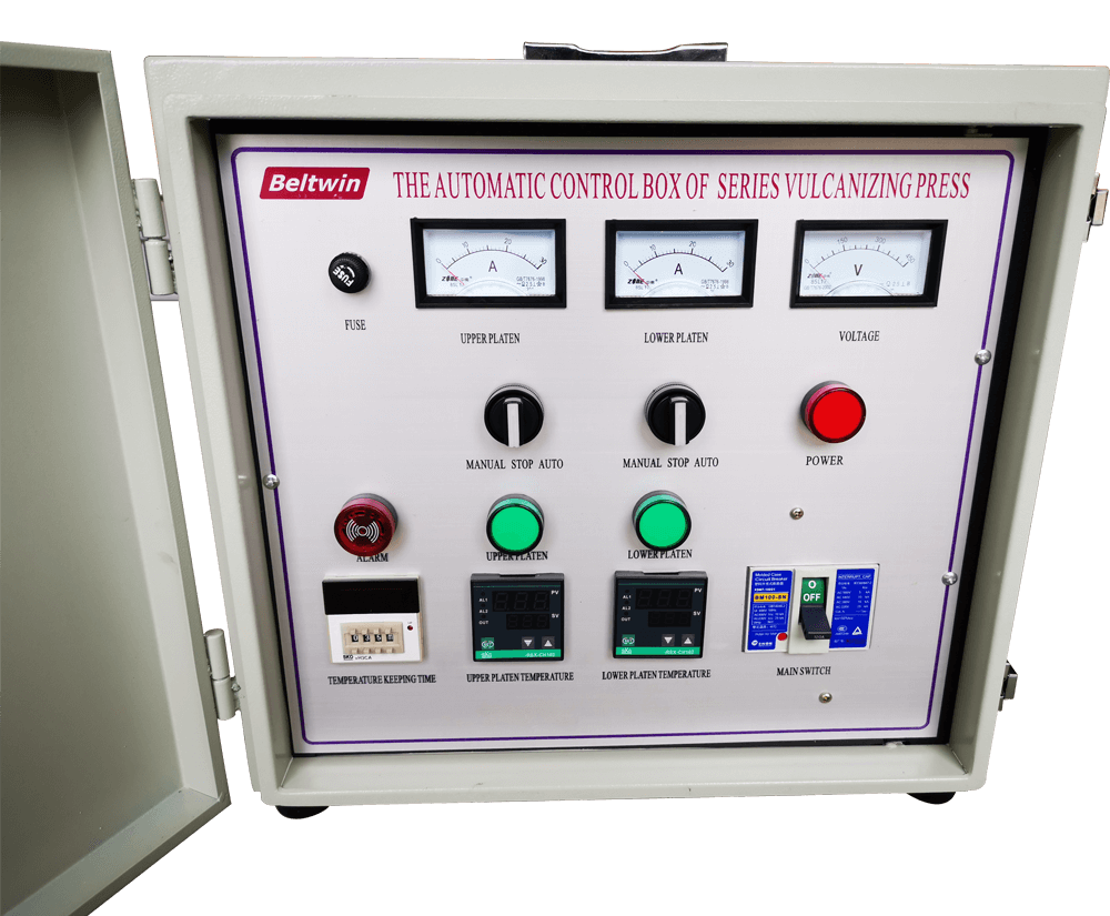 Avec contrôle du temps et contrôle numérique de la température. Une fois que la température de chauffage des deux plateaux, le temps de séjour, la température de refroidissement et la pression ont été réglés, l'ensemble du processus d'épissage se déroulera automatiquement. Toutes les pièces utilisent des appareils électriques de haute qualité certifiés CE. En cas de panne du contrôleur électronique, un fonctionnement manuel est également possible.