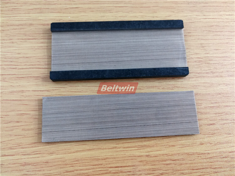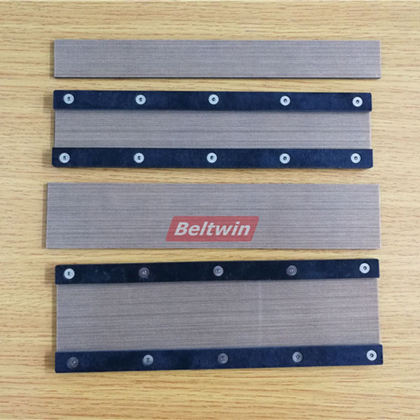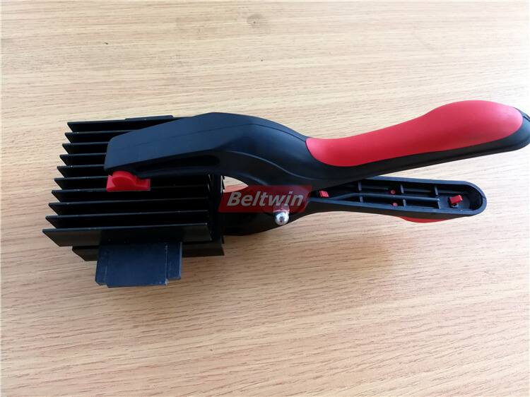 Insérez les extrémités de la courroie à épisser dans le rail de guidage d'épissure ci-dessous. Le rail de guidage de jonction doit correspondre à la largeur du matériau. Courroie large différente, nécessite un rail de guidage différent.