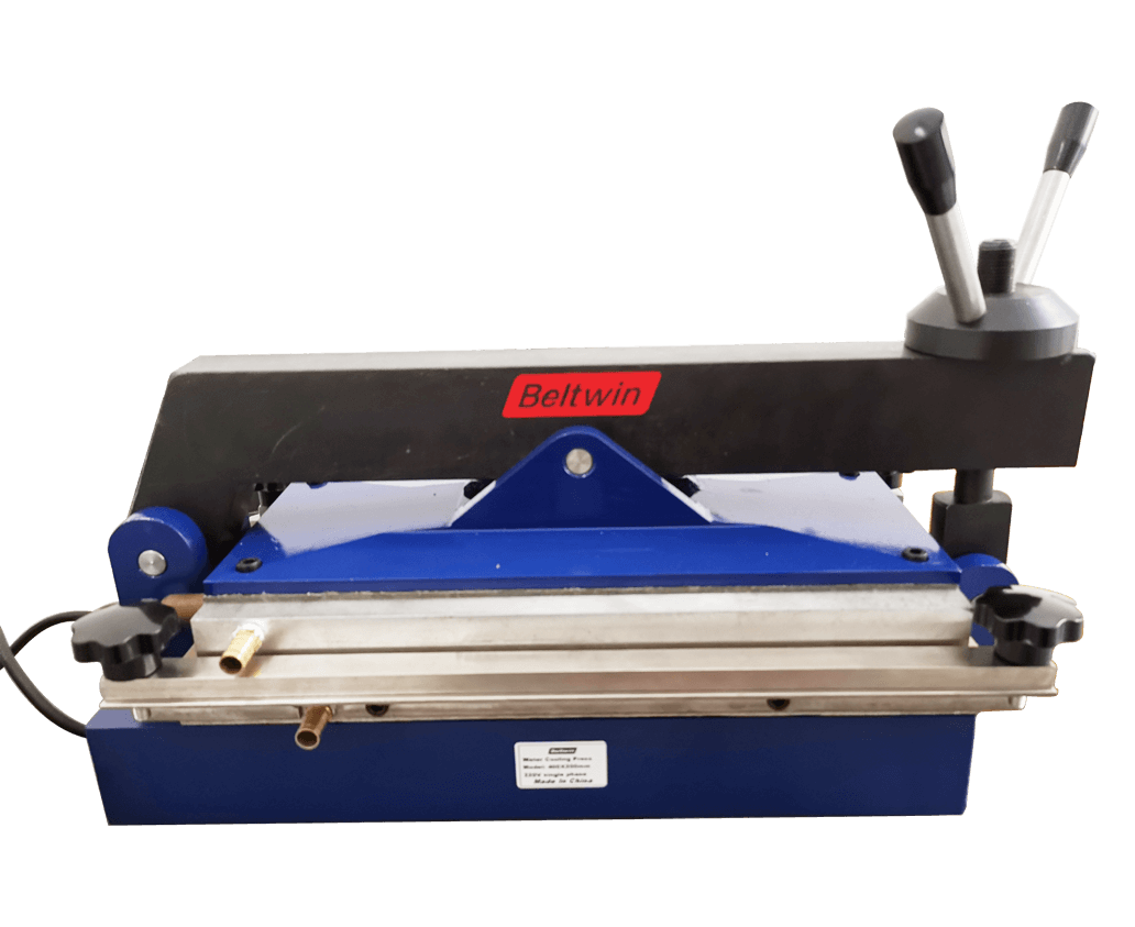 Il est facile d'utiliser cette presse portable pour épisser la bande transporteuse en PVC, la transmission et la bande plate. Largeur de bande jusqu'à 400 mm. Avec régulateur de température et système de refroidissement par eau.